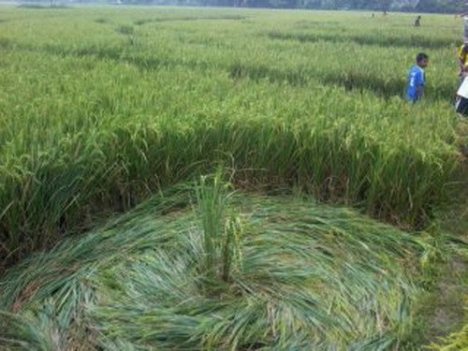 Pola geometris di Sleman bukan juga disebabkan oleh puting beliung atau pengaruh elektromagnetik dari SUTET (Saluran Udara Tegangan Ekstra Tinggi milik PLN). Puting beliung tidak akan menghasilkan pola yang rapih. SUTET pun tidak akan memberi dampak pola geometris, karena tanaman padi tidak terpengaruh oleh medan listrik atau medan magnet dari jaringan listrik itu.